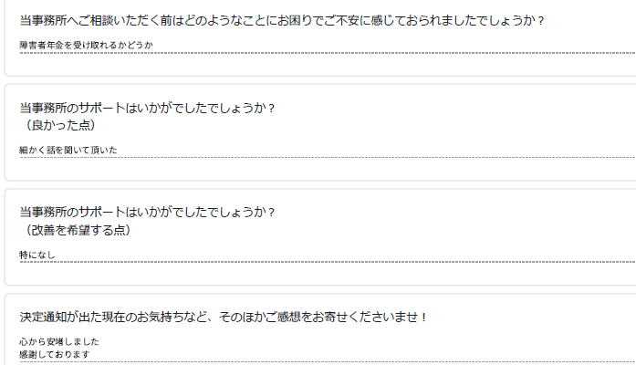 障害年金の受給が決まり、経済的な不安が少し解消されたことで気分も落ち着いたとお話してくださったことが印象的でした。